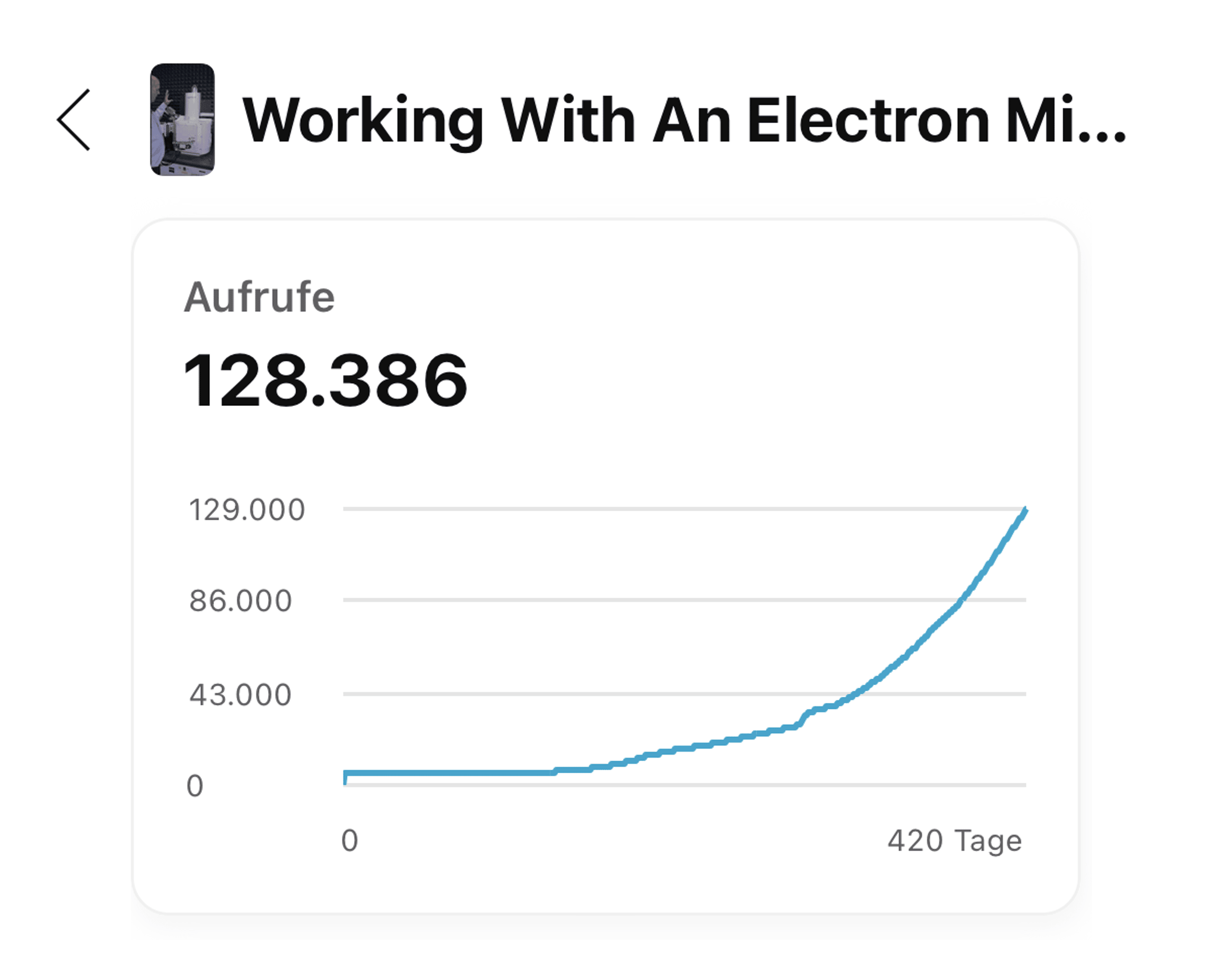 This is a graph from YouTube Studio, where you can analyze the performance of your content. What is there to notice? It took several months before this Short gained significant traction. That means months thinking you suck at creating content. If you look closely, you see a sharp initial rise - it got a few thousand clicks within the first day and then sat there for months.